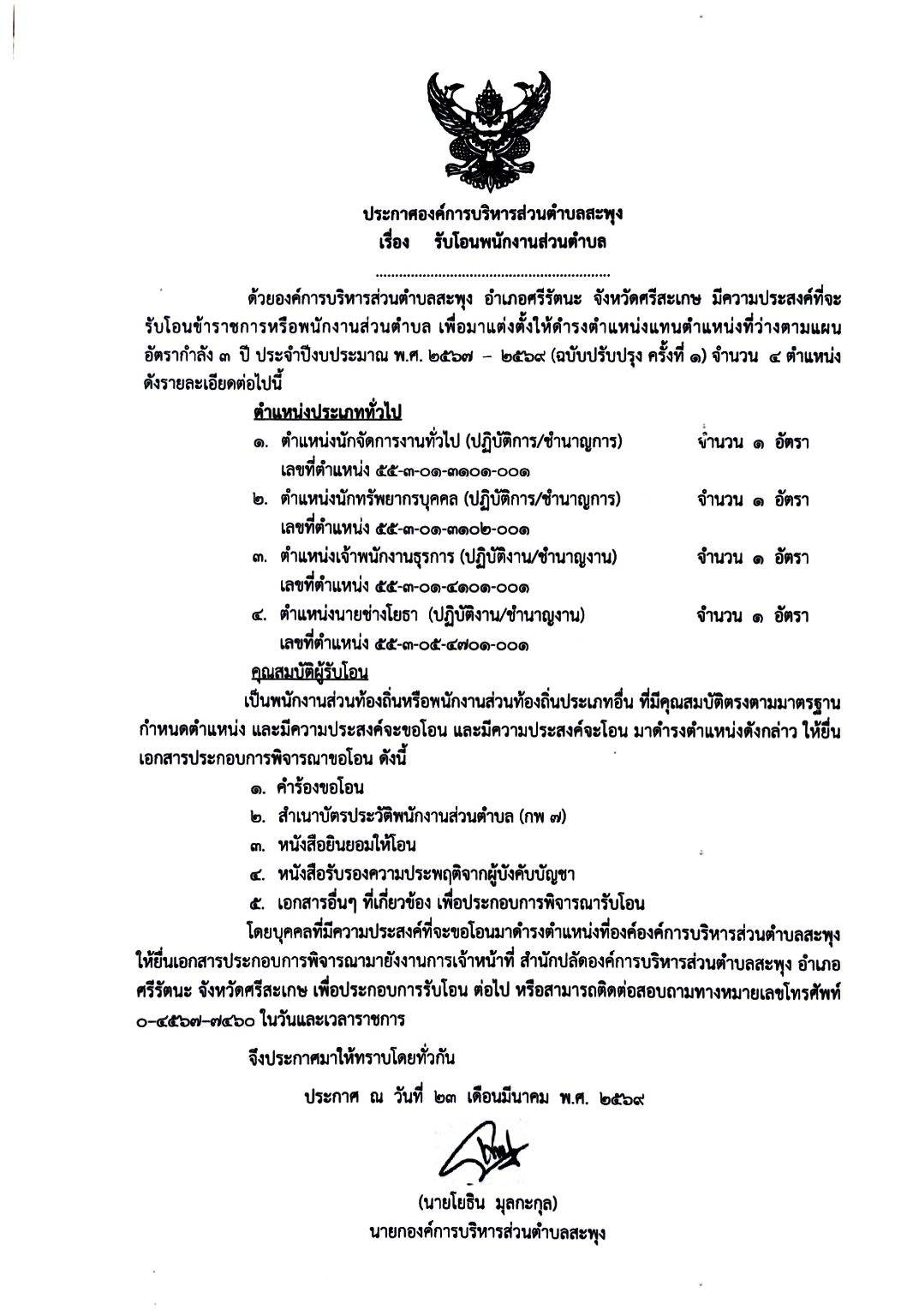 ประกาศองค์การบริหารส่วนตำบลสะพุง เรื่อง รับสมัครบุคคลเพื่อการสรรหาและการเลือกสรรเป็นพนักงานจ้าง (ตำแหน่งผู้ช่วยนายช่างโยธา) |